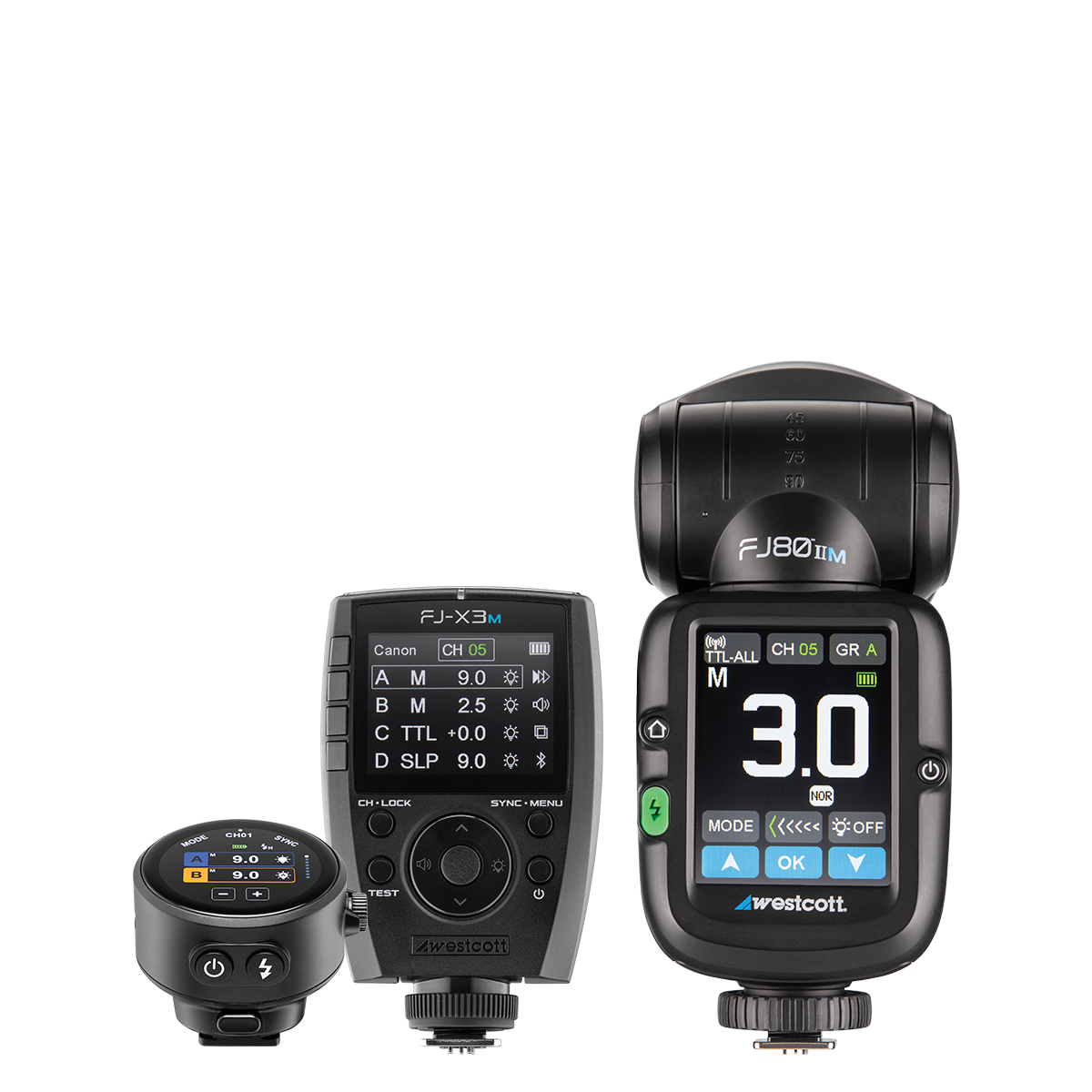 The FJ Wireless System makes connecting and controlling your flashes simple. With the FJ-T1 Touchscreen Trigger, the FJ-X3 Trigger and FJ80 Speedlights, you can easily manage multi-light setups, adjust settings remotely, and enjoy seamless integration.