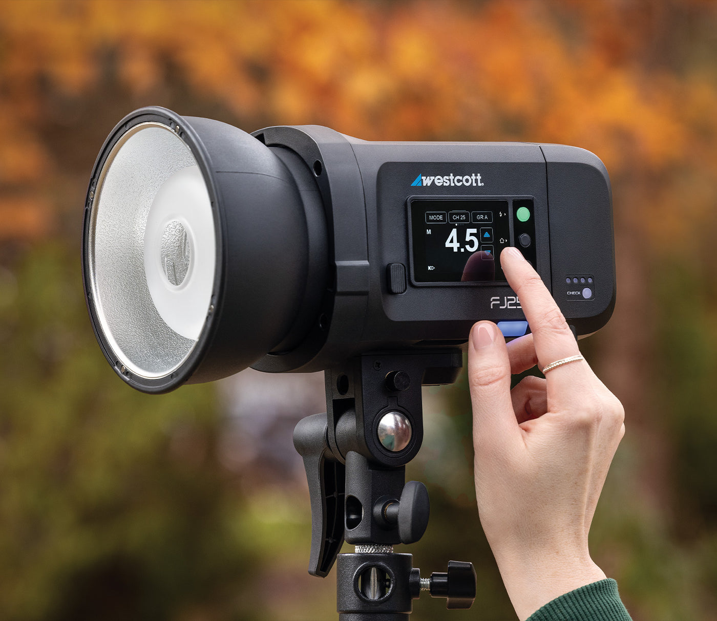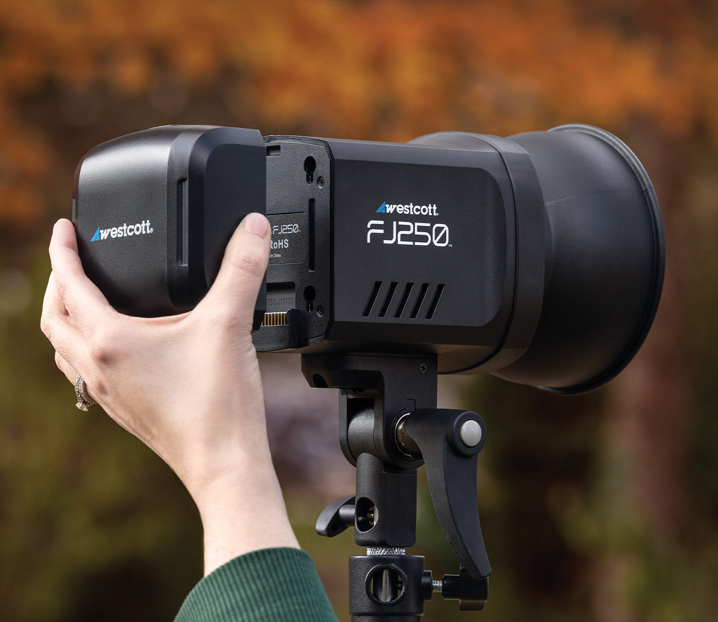 The FJ250 delivers fast, reliable flash power with the most full-power flashes per charge of any compact strobe in its class. Designed to pair seamlessly with the FJ400 II or FJ800, it features swappable AC/DC batteries, a native Bowens mount, and a full-color OLED touchscreen for faster shooting with fewer headaches.