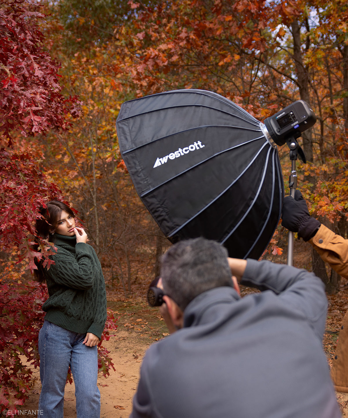 The flash’s round head and extended flash tube deliver a wide, even light spread to fill modifiers beautifully. Its Bowens mount and Rapid Box Switch Insert ensure seamless compatibility with Westcott’s extensive line of portable light modifiers. The tilter bracket also has a 9mm mount for large umbrellas.